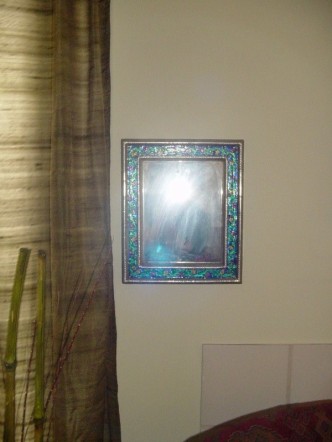 So: here are some of the mirrors that I call my own. Actually, I didn’t consciously go about collecting them; it just so happens that they’ve come to me one way or another, and most, if not all have some meaning to me. Look inside any one of them, and voila! a work of art is there for your viewing pleasure. Small note on each of them in the order that they appear: